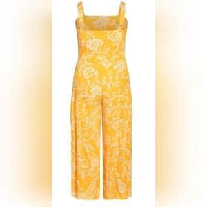 Size M-L Jumper wide leg BOHO Floral print yellow adjustable straps CITY…