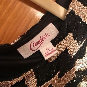 Size small dress, never worn gold and black. Fits snug around the torso and then gets looser, falls just above the knees (I'm 5'6). Material is stretchy so it's comfy. Great for holiday parties or other formal events!