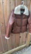 Chic brown leather jacket with cozy shearling collar. Features zip pockets and cuffs.