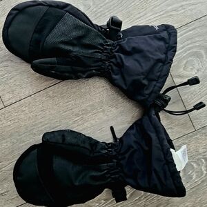 Men's Small Black Mitts with Grey detail, elastic to keep snow out, gently used