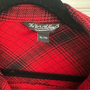 Size XL The BC Clothing Co 100%Cotton Red and Black Plaid Flannel Button Down