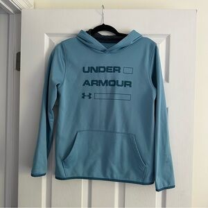 Size XL Youth Under Armour Fleece Wordmark Hoodie - Blue/ Acadia