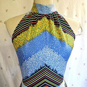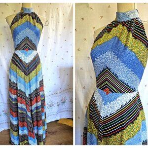 Size XS to S Vintage 1970s Halter Neck Maxi Dress