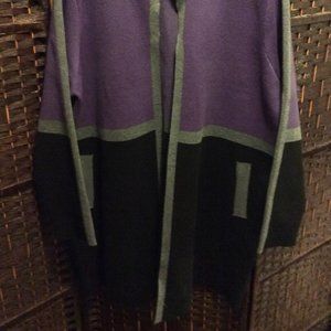 Size XXL - Purple/Black/Grey Long Color Block Sweater w/ Pockets