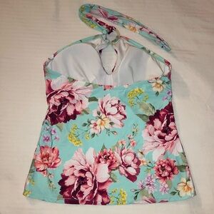Size medium Blue and Green Floral Halter Sleeveless Tank swim bathing suit Top