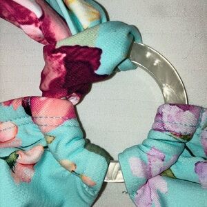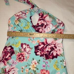 Size medium Blue and Green Floral Halter Sleeveless Tank swim bathing suit Top