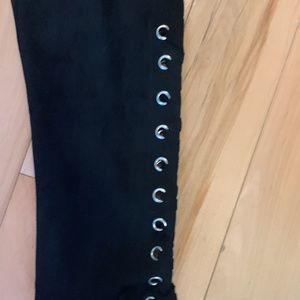 Size medium forever 21 black suede like pants with lace up detail on calves