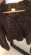 This cutie is a brown and cream mixed cardigan . Has pearls around the sleeves that are bishop style and around the neck and down the front . 5 Brass like Button closure . Like new used condition .