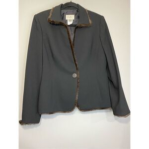 Size 10, Sunny Choi Canadian designer made in Canada wool & mink fur trim blazer