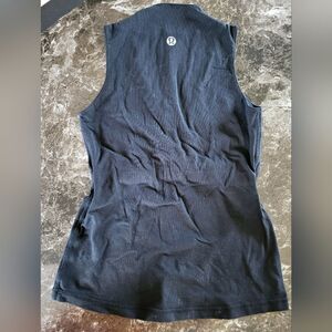 Lululemon always delivers on comfort AND style. The black sleeveless top is form-fitting with a unique front opening.
