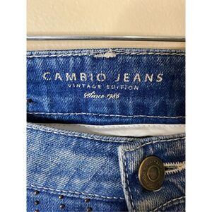 Size 8, distressed with crystal embellishment Cambio jeans Liu style short.
