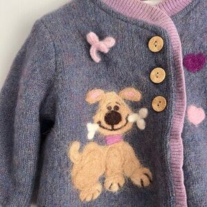 Skazandi Cardigan Sweater Wool Needle Felting Dog Hearts Purple 3T