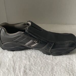 Step into elegance with these Skechers black loafers, designed for a seamless blend of style and comfort. The sleek slip-on design features a polished leather upper and a slightly squared-off toe, perfect for formal or business occasions. Enjoy the timeless appeal of their monochromatic look and clean lines. No original box