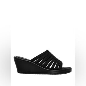 Step into comfort with black slide wedge sandals. Perfect for any casual outing.
