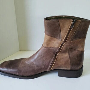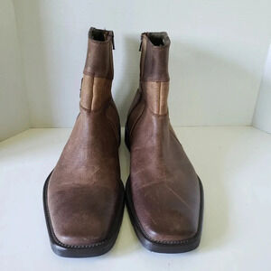 Skechers Collection mens brown distressed leather zippered ankle boots.