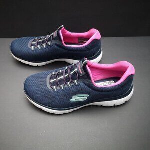 Skechers Ladies Size 6 Navy & Pink Wide Fit Slip On Style Sneakers