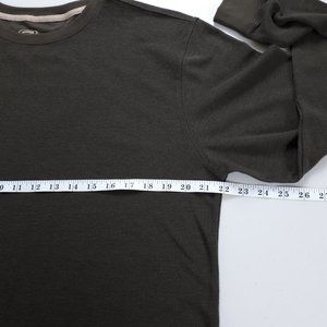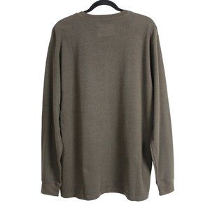 A pullover crew neck shirt in an olive green shade. Made with a breathable and durable cotton blend. Long sleeves and waffle knit for all day comfort and warmth. Perfect for fall and winter. New with tag. Great condition.