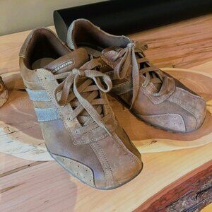 Skechers Men's Tan leather suede easy comfort walking shoe Sz 9.5