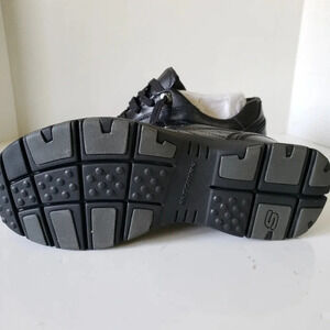 Skechers Relaxed Step Mens Black Leather Lace-up Shoes,9.5 US.