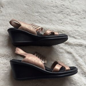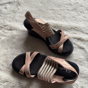 Skechers Rose Gold Wedge Sandals | Comfort Platform Strappy Slides Size 6