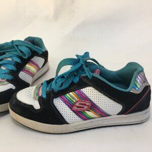 Skechers Running Shoes Sneakers Size 2 Girls Leather Rainbow Black Metallic