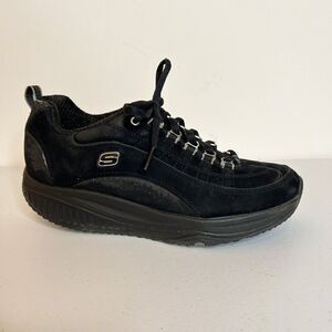 Skechers Shape Up Black Leather Rocker Sole Sneakers