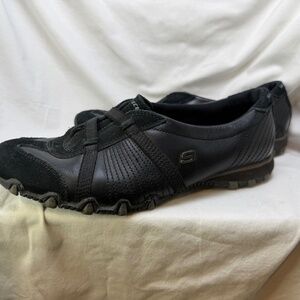 Skechers Slip On Sneakers Womens Size 8 Black Biking Comfort Walking Leather