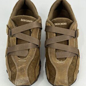 Skechers Sneaker Size 8 Brown Leather Low Top Round Toe Hook Loop Flat Heel