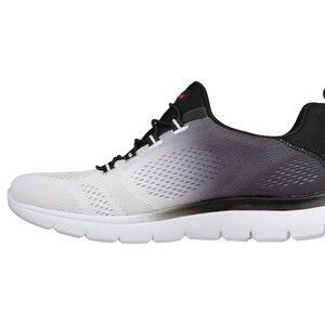 This ombre print slip-on features a soft mesh upper with stretch laces and a cushioned Skechers Memory Foam™ comfort insole.