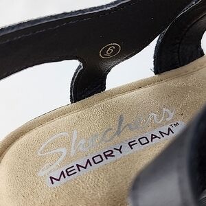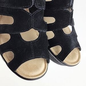 Excellent pre-owned condition, Skechers women's black suede wedge platform Parallel Stylin cutout sandals, size 6.