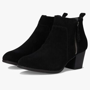 Add chic tailored style and feet-loving comfort to your look in Skechers Taxi - Out In Town. This bootie features perforated heel and water-resistant suede upper with a Skechers Air-Cooled Memory Foam® comfort insole.