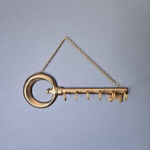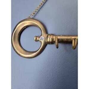 Skeleton Key Solid Brass Key Hook Hanger Made in India Vtg Functional Wall Art