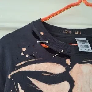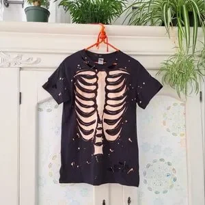 Handmade distressed bleach ribcage shirt. Super grungy and goth look with safety pin details 🧷