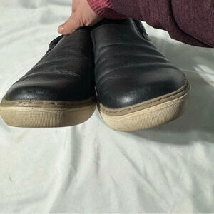 Sketchers Leather/Synthetic Upper Slip-on Shoes Black Tan soles Size 10