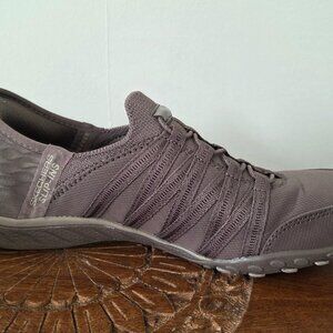 Lightweight, cushioned pad and heal, great traction, worn once, neutral grey slip-on Sketchers. Perfect for the gym, walking, and errands.