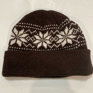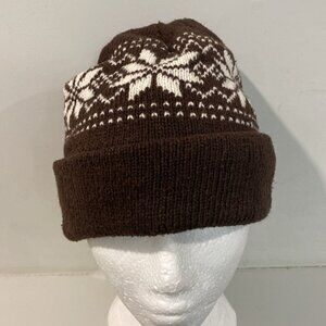 Woman's Ski White and brown pattern soft knit cap hat beanie
