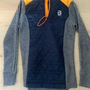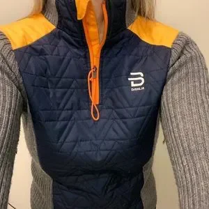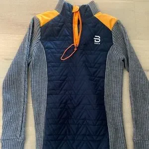 dahlie warm colour block outdoor ski sweater. It is in excellent condition only worn a few times. From part is quilted and the sleeves and back rib knit. Has a half zip and mock neck and thumb hole on sleeves. Super trendy and warm. The size is junior but fits like a ladies small(4-6)