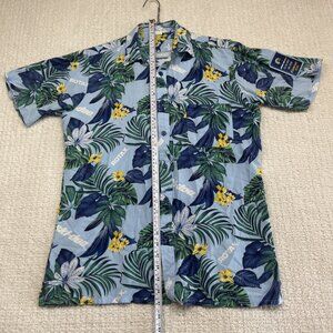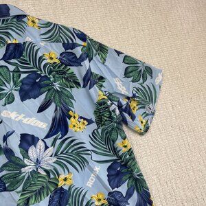 Ski-Doo Blue Button Shirt Men's M Bombardier Club Floral Hawaiian Shirt Summer