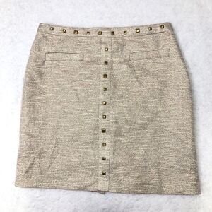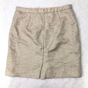 Very good condition. Metallic gold thread weaved through the skirt. Hidden back zip with hook closure. Fully lined. Goldtone studs.