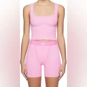 Skims pink ribbed tank top. No longer available. Great condition worn a few times. Size medium.