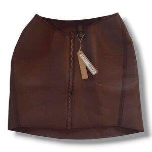 "This dipped v-waist mini skirt is the sexiest way to complete your Scuba Swim look. Features a center front zipper closure and raw edge bottom. Fits true to size."