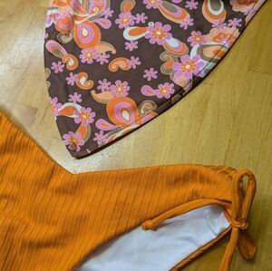 Bottoms are V shaped, ribbed texture in solid orange.