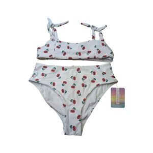 Skinny Dip Cherry Print Y2K Vibes Highrise Bikini With Tie Top Size S/M