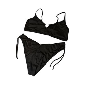 Skinny Dip Ribbed Black V-Shape Bikini Bottom/Notched Top Size Large NWOT