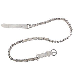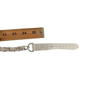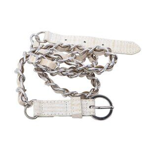 Skinny Faux Leather Chain Belt Silver Cream Adjustable Casual