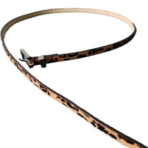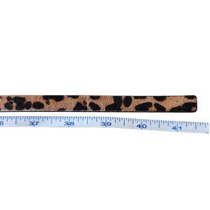 Half inch wide animal print skinny belt. Colours are black, tan and orange. 41.5 inches long and in very good used condition.