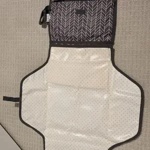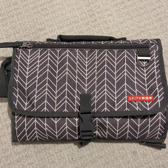 Skip Hop Portable Changing Pad, excellent used condition. Fully functioning and sturdy zipper pockets, clean. Perfect for carrying diapers and wipes in convenient tote. Chevron design, gray colour.