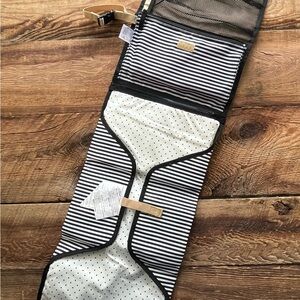 Chic striped design with practical tan accents. Ideal for organizing essentials.