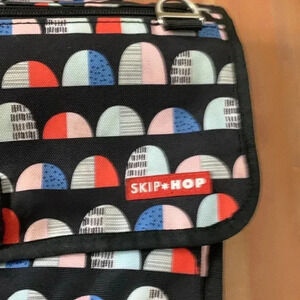 The changing part is removable. This has lots of pockets for diapers, wipes, toys, etc..