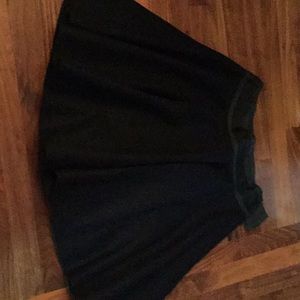 Dark navy 80% wool flared skirt with black and green waist band.
